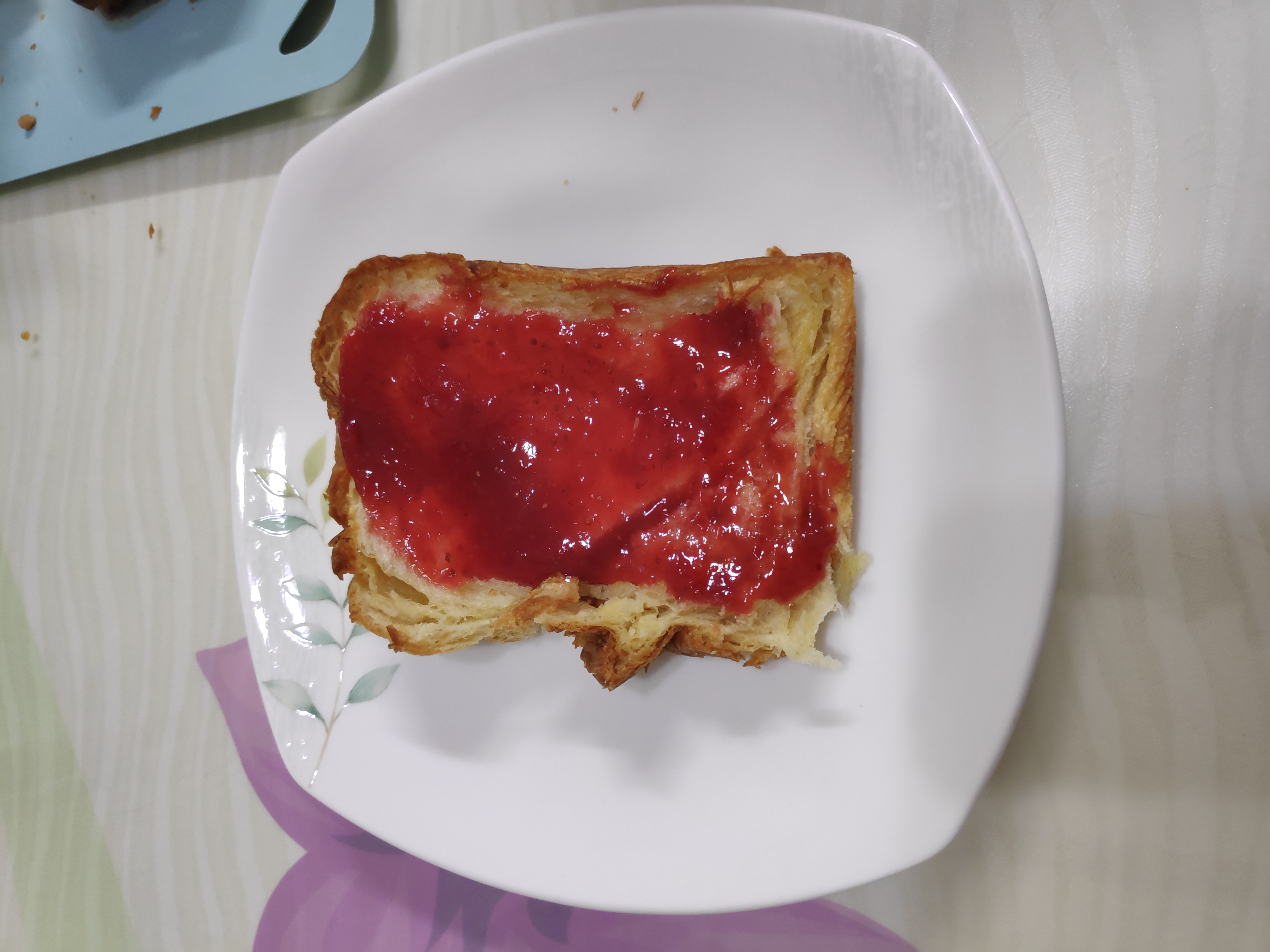 데워진 빵에 얼마전 만든 딸기잼을 쓱쓱 발라서 맛있게 냠냠~~