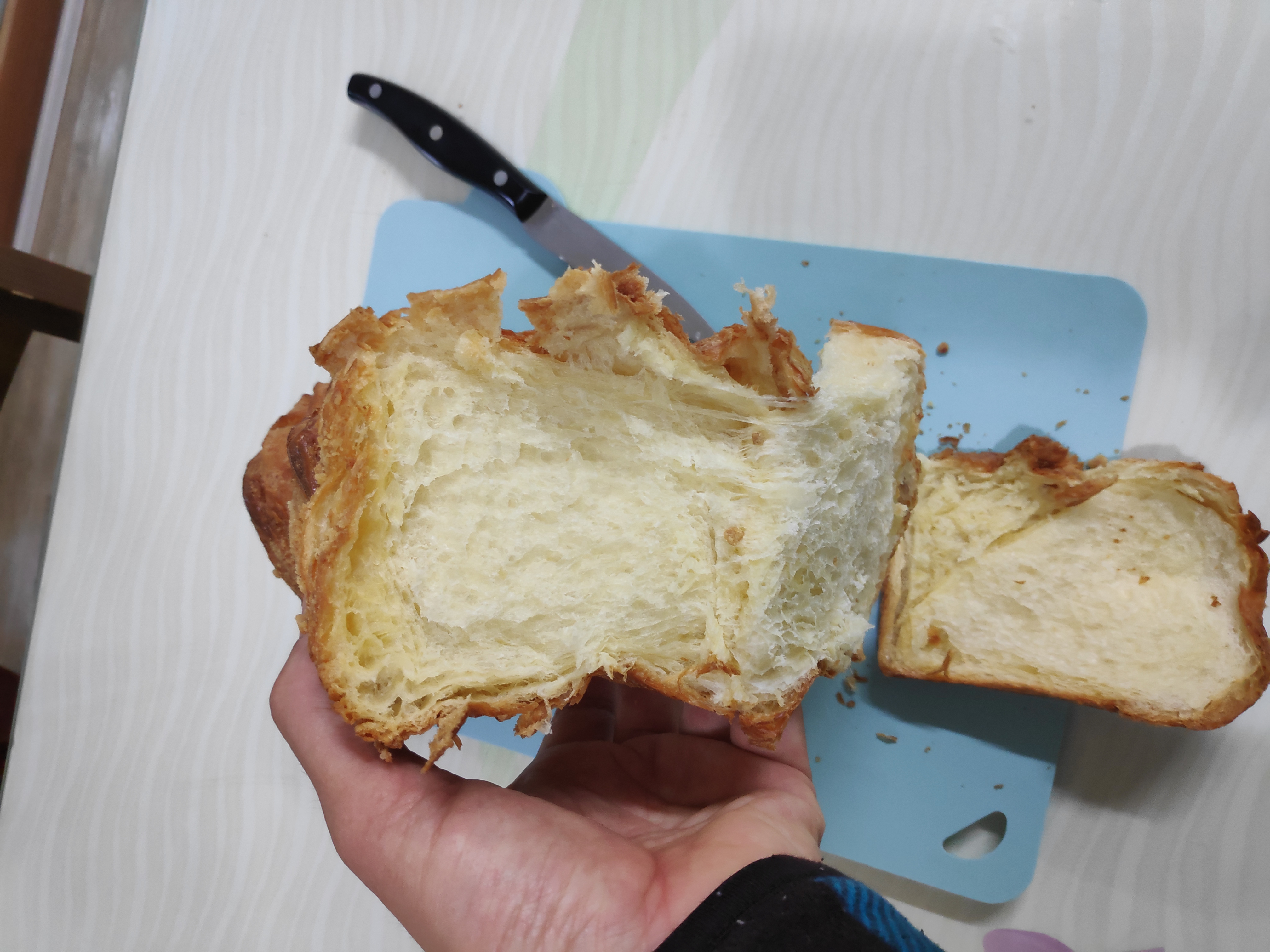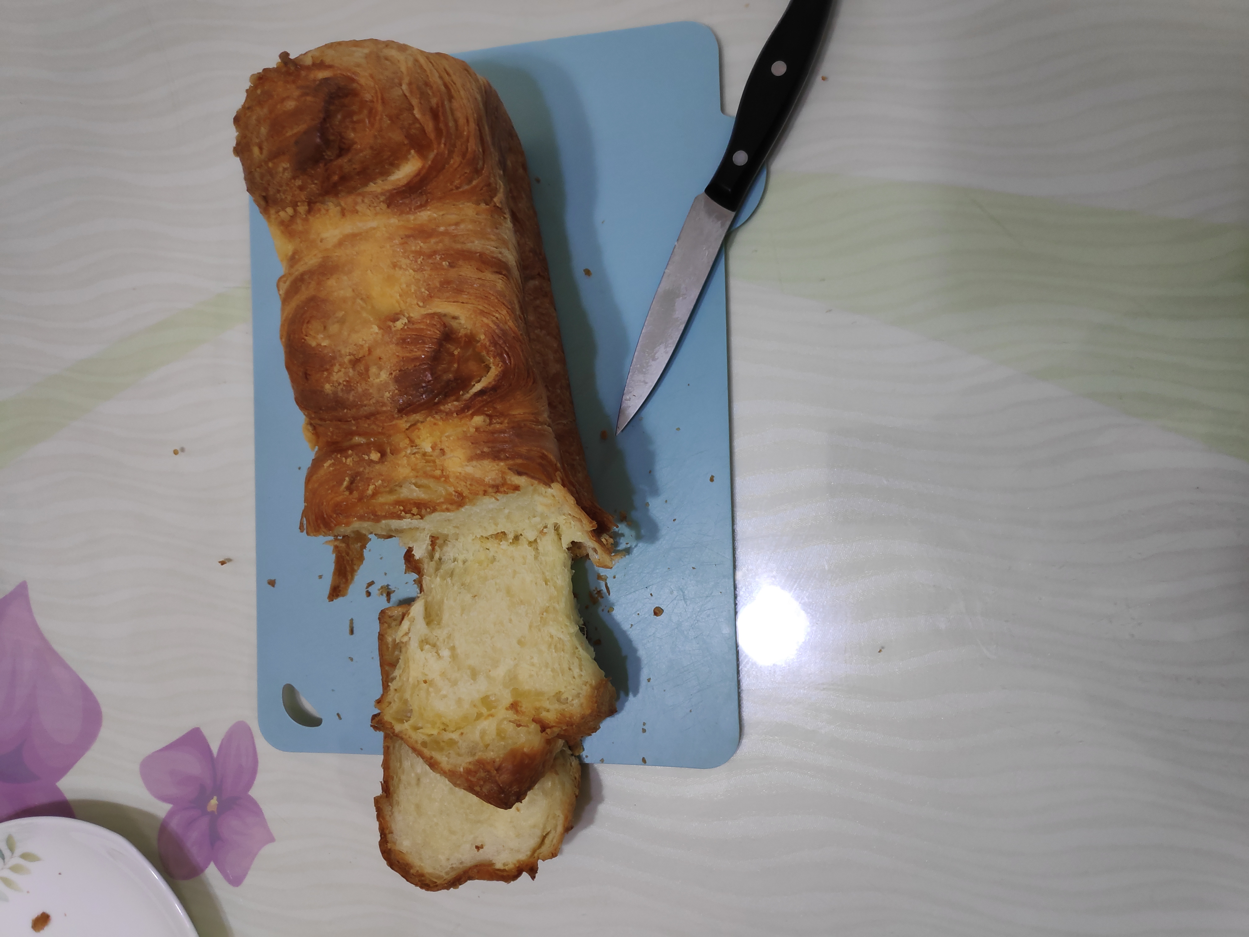 냉장보관된 데니쉬식빵을 180도에 5분데워 잘라보았다. 겉은 바삭하고 속은 촉촉하게 잘데워졌다.