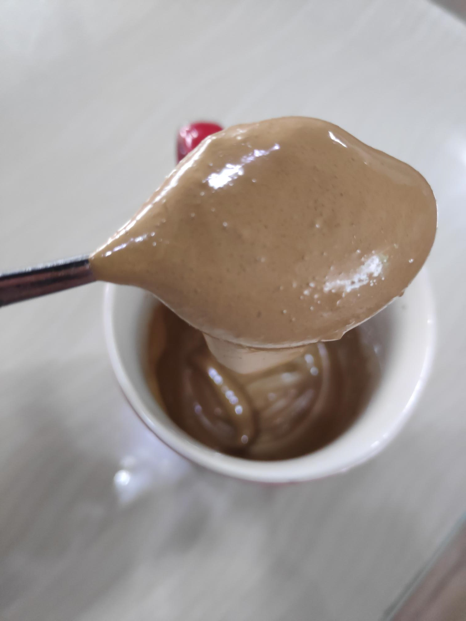 그리고 거기서 조금더 저었더니 마침내 찐득한 머랭같은 달고나 커피가 완성되었다.