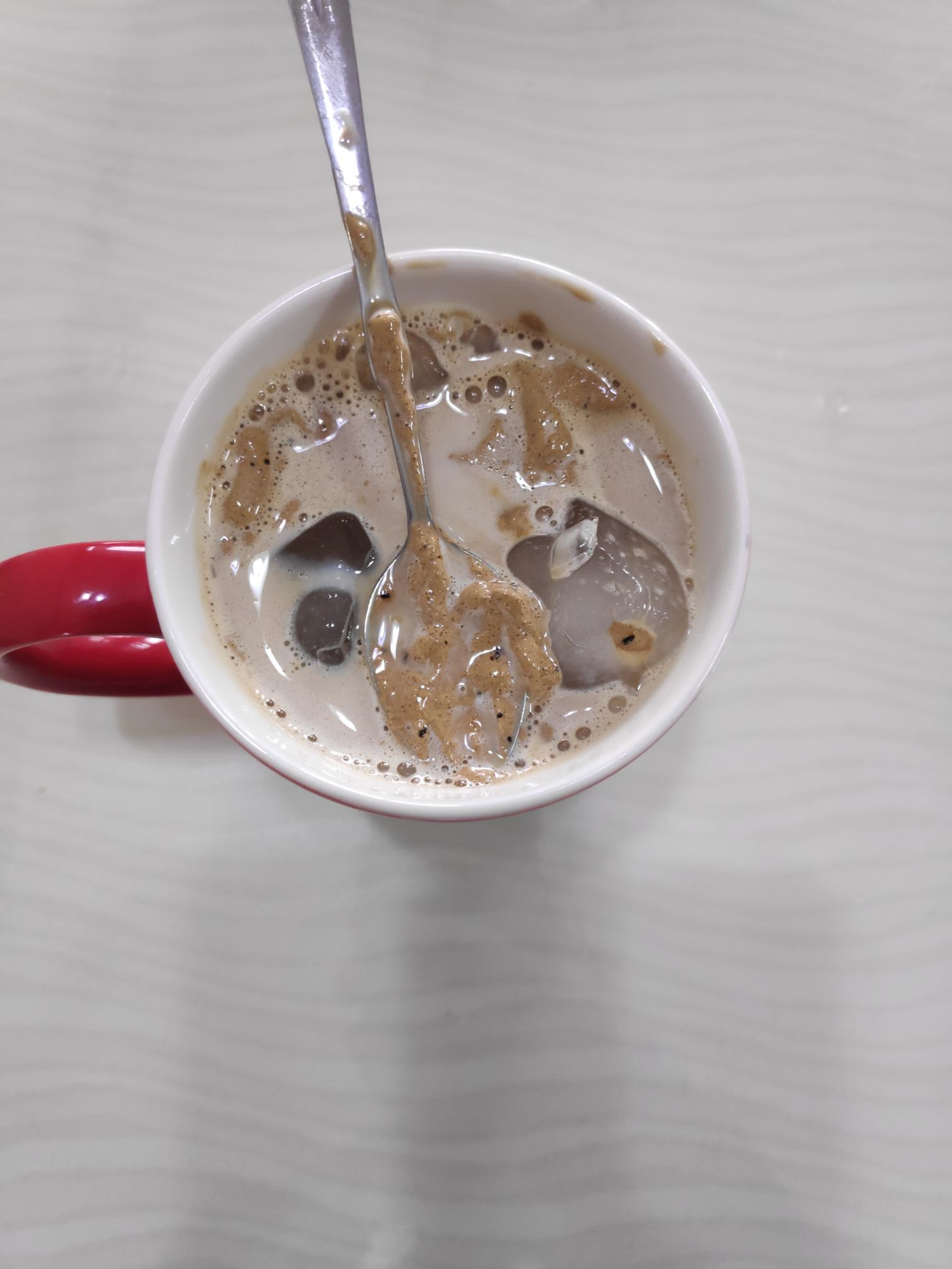 어차피 섞이면 맛은 똑같다는 생각에 섞은 컵에 얼음이랑 우유를 투하하여 저어 보았다.