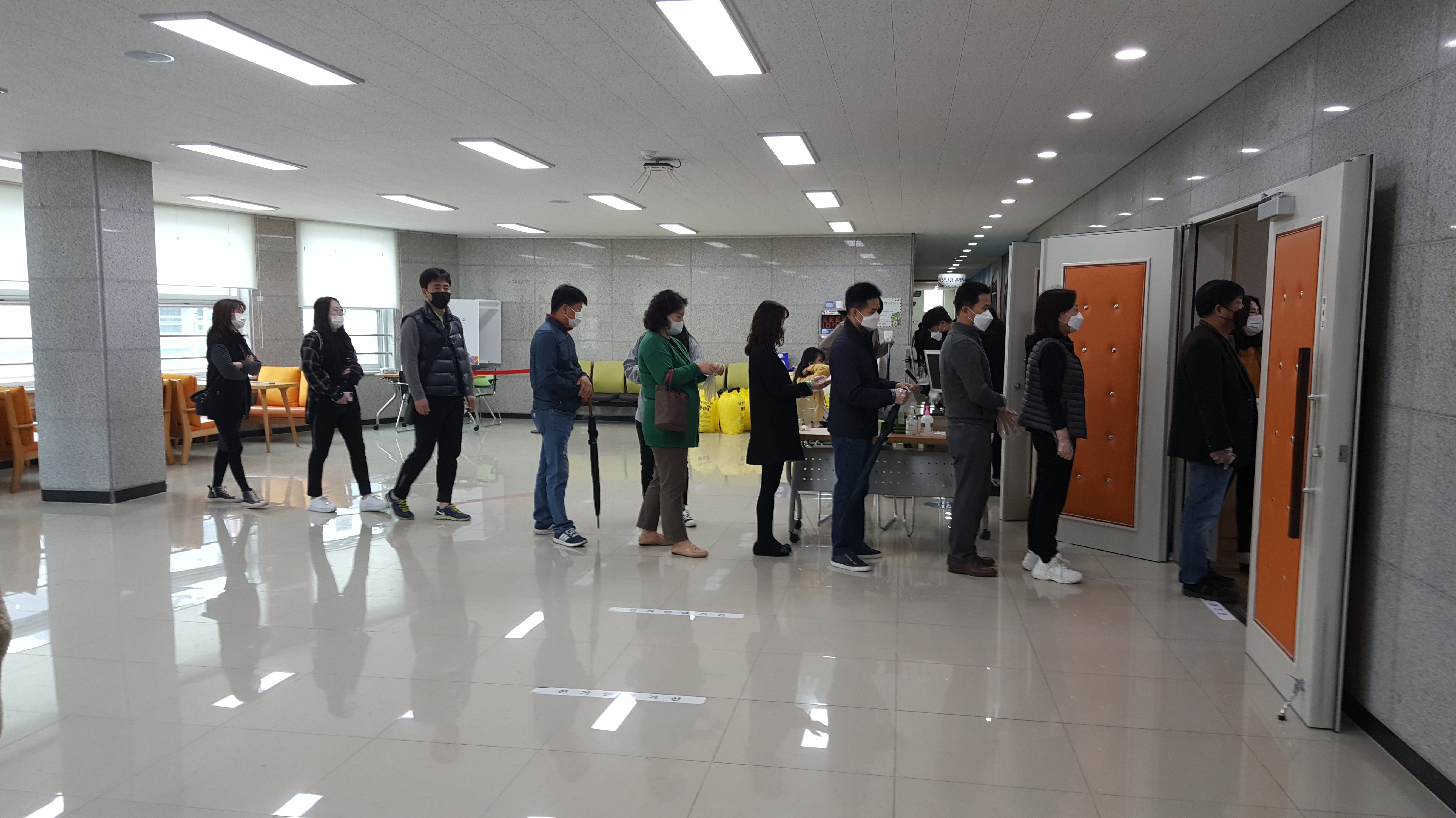 오후1시까지 일하고 난뒤 점심식사후 투표를 하러갔는데 행정복지센터 입구에서 부터 사람들이많다.